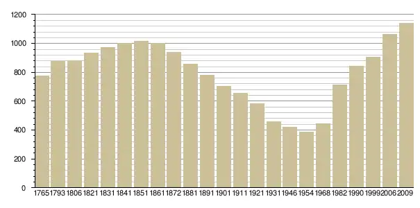 Динаміка населення (Baratier, Duby & Hildesheimer pour l’Ancien Régime ; Insee[3], EHESS[4] pour les chiffres issus des recensements légaux ):
