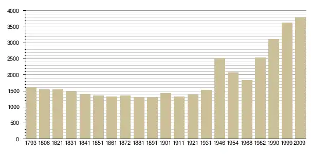 - Insee : historique des populations par commune depuis le recensement de 1962, наведено за французькою вікіпедією