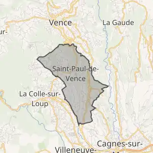 - Розташування муніципалітету Сен-Поль-де-Ванс на мапі Франції та сусідні муніципалітети