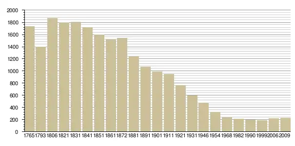 Динаміка населення (Baratier, Duby & Hildesheimer pour l’Ancien Régime ; INSEE[3], EHESS[4] pour les chiffres issus des recensements légaux ):