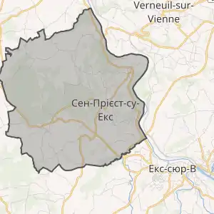 - Розташування муніципалітету Сен-Прієст-су-Екс на мапі Франції та сусідні муніципалітети