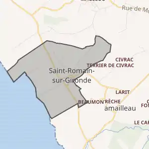 - Розташування муніципалітету Сен-Ромен-сюр-Жиронд на мапі Франції та сусідні муніципалітети
