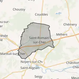 - Розташування муніципалітету Сен-Ромен-сюр-Шер на мапі Франції та сусідні муніципалітети