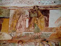 Сюжети розписів не обмежуються біблійними сценами — деякі фрески ілюструють епізоди з байок Езопа, проте переважна більшість ілюструє епізоди ранньої старозавітній історії — «Створення людей», цілий цикл, присвячений Всесвітньому потопу та Ною, «будівництво Вавилонської вежі», «Бог промовляє до Авраама», «Авраам та Лот», «Похорон Авраама», «Яків благословляє Йосипа», «Брати продають Йосипа в рабство», «Перехід через Червоне море», «Бог дарує Мойсею скрижалі» тощо.