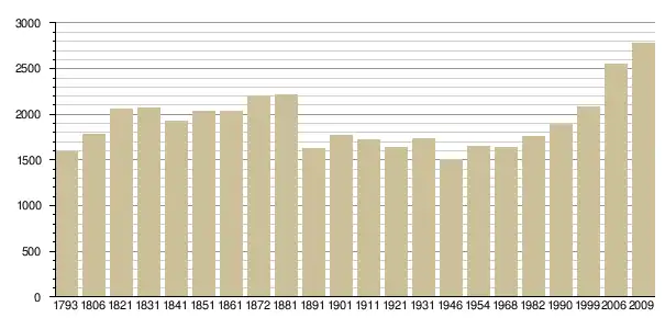 Динаміка населення (base Cassini de l'EHESS pour les nombres retenus jusque 1962[3], base Insee à partir de 1968 (population sans doubles comptes puis population municipale à partir de 2006)[4] · [5] ):