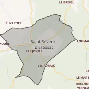 - Розташування муніципалітету Сен-Северен-д'Естіссак на мапі Франції та сусідні муніципалітети