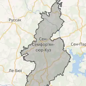- Розташування муніципалітету Сен-Семфор'ян-сюр-Куз на мапі Франції та сусідні муніципалітети