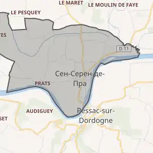 - Розташування муніципалітету Сен-Серен-де-Пра на мапі Франції та сусідні муніципалітети