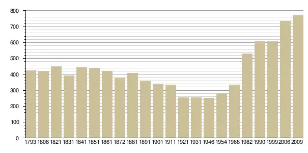 Динаміка населення (Ldh/EHESS/Cassini[3] jusqu'en 1962 і INSEE[4] depuis 1968. ):
