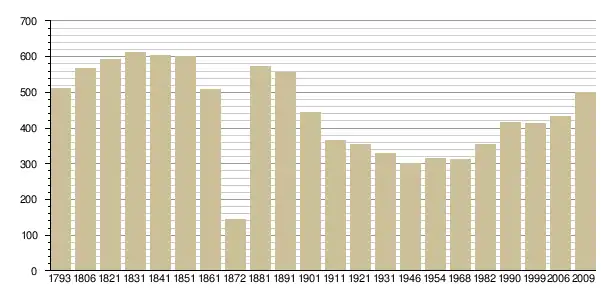 Динаміка населення (base Cassini de l'EHESS pour les nombres retenus jusque 1962[3], base Insee à partir de 1968 (population sans doubles comptes puis population municipale à partir de 2006)[4] · [5] ):
