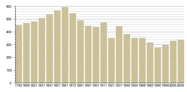 Динаміка населення (base Cassini de l'EHESS pour les nombres retenus jusque 1962[3], base Insee à partir de 1968 (population sans doubles comptes puis population municipale à partir de 2006)[4] · [5] ):