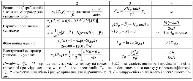 - Сепараційні характеристики збагачувальних апаратів.