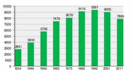 За даними перепису населення 2011 року у місті проживали 7869 осіб.