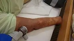 ![]() Пацієнт з септичним шоком і мікротромбозами в шкірі Пацієнт з септичним шоком і мікротромбозами в шкірі | |