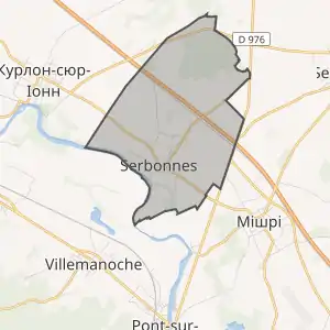 - Розташування муніципалітету Сербонн на мапі Франції та сусідні муніципалітети