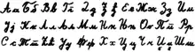| Ј ј | J j | [j] | й (напочатку слова і після голосних: ја→я, је→е, ји→и, јо→йо, ју→ю; після приголосних: ја→ья, 'я, је→ьє, ји→ьї, јо→ьйо, ју→ью, ''ю) |