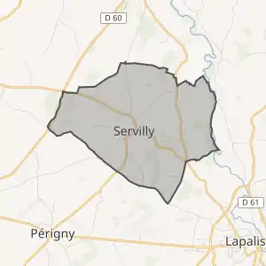 - Розташування муніципалітету Сервіллі на мапі Франції та сусідні муніципалітети
