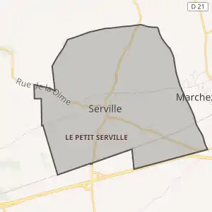 - Розташування муніципалітету Сервіль на мапі Франції та сусідні муніципалітети