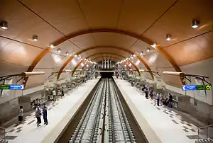 Станція є найоб'ємнішою з усіх, побудованих Новоавстрійським методом в Європі. Склепіння станції вирішене в червоно-цегляному кольорі з еталбонду. Стіни покриті керамогранітом, а підлога гранітом. На платформах споруджено скляні вітрини, в яких розташовані древні артефакти. Станція обладнана ескалаторами і ліфтами для матерів з дітьми та громадян з вадами руху.