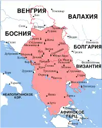 Протягом 1372 - 1374 рр. турки підкорили майже всю Македонію до річки Вардар. Центр сербської державності змістився на північ, в область, якою правив князь Лазар Хребелянович.