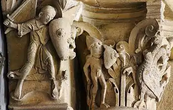 "Кит ковтає Іову", капітель в нефі абатства Мози