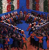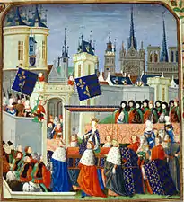 Серед численних свят і релігійних процесій особливо виділялись пишні вступання королів, королев і принципів, що отримали розповсюдження з XIV століття. Ці урочисті церемонії, відбувались за великого скупчення народу і були помітними подіями міського життя, вони ретельно готувалися і фінансувалися зі скарбниці Парижа (в ритуалі королівських в'їздів до кортежу, що зустрічав государя, входили перш за все фінансисти, в тому числі з Рахункової палати, потім — судді з Шатле, потім — представники міської влади, і насамкінець — представники парламенту, оскільки саме вони вітали і супроводжували короля). З такого приводу міська влада, цехи і прості парижани ретельно прибирали вулиці, прикрашали фасади будинків тканинами і килимами, посипали мостові запашними травами і квітами. Церемонії супроводжувались пишними процесіями і щедрими частуваннями (біля дверей ратуші всім перехожим роздавали хліб і вино, іноді навіть фонтани замість води наповнювали вином, дітворі з вікон міської управи розкидали груші, персики і горіхи), а шляхом слідування процесії перед церквами і на площах розігрувались театральні вистави. Вночі влаштовували ілюмінацію, на площах лунали пісні і музика, веселощі завершували танцями. Святковий настрій обивателі виражали капелюхами, прикрашеними квітами (їх виготовляв спеціальний ремісничий цех). Такі урочисті в'їзди символізували союз короля зі своєю столицею і всіма її мешканцями (всім парижанам належало брати участь у всіх церемоніях, які стосувались короля і членів його родини). Крім того, з міської скарбниці оплачувався похорон королівських осіб, зустрічі іноземних послів та інші урочисті заходи[68][60].