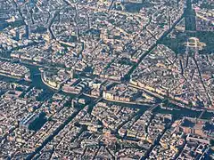 До початку раннього Середньовіччя в Парижі ще були помітні сліди галло-римського міста. У західній частині Сіте знаходився палац римського намісника, а у східній — храм Юпітера. По периметру острова височіли фортечні мури з двома брамами біля мостів (на будівництво цих стін в середині IV століття пустили частину каміння від зруйнованого германцями римського міста). На лівобережжі, на пагорбі Сент-Женев'єв (сучасний V округ, квартали вздовж бульвару Сен-Мішель) і навколо нього лишалися рештки римського форуму з храмом, малими і великими термами, акведуком, палацами, лавами і амфітеатром, а вершину пагорба Монмартр увінчував храм Меркурія (у 1133 році Людовик VI заснував на Монмартрі бенедиктинське абатство, а наприкінці XV століття залишки римських терм були включені в склад абатства Клюні). Але значення античної Лютеції для формування подальшого планування міста було вельми істотним. Напрямок старої римської дороги, що перетинала Сіте, обумовив розвиток міста не тільки вздовж ріки, але й вздовж осі південь-північ (тепер вона проходить вулицею Сен-Жак на лівобережжі, вулицею де ла Сіте, що перетинає острів впоперек, і вулицею Сен-Мартен на правому березі; паралельно до неї іде лінія бульварів Сен-Мішель і Севастопольського)[8][9][6][7][10].