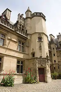 Різноманітні церковні ієрархи (єпископи, настоятелі великих абатств чи пріори) також мали у Парижі резиденції, в яких жили під час приїздів до столиці. Архієпископ Санса володів красивим палацом Сен-Поль на правому березі Сени (сучасна набережна Целестинців у IV окрузі). У 1365 році палац перейшов у власність короля Карла V, який перетворив Сен-Поль на ще одну королівську резиденцію поруч з Лувром (розташування архієпископського палацу одразу біля ріки дозволяло королю швидко і непомітно залишити місто водою, особливо Сен-поль полюбляв Карл VI Божевільний). Як компенсацію Карл V придбав для архієпископа палац Естоменіль на вулиці Фіг'є, де той і влаштував паризьку резиденцію. У 1475 році стара, спорохніла будівля була знесена і на її місці побудували розкішний палац Санс, закінчений у 1519 році (також до нашого часу зберігся палац абатів Клюні, зведений у XV столітті поруч з руїнами античних терм)[90][23].