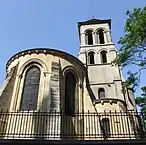 Середньовічний Париж залишив прекрасні зразки романської архітектури (X—XII століття), в якій відродились, хоч і в дещо переробленому виді, основи, запозичені франками в римській архітектурі. Для романського стилю були характерними важкі пропорції, потужні стіни, несучі півциркульні склепіння і аркові перекриття прорізів. Однією з найпомітніших паризьких пам'яток архітектури того періоду є церква Сен-Жермен-де-Пре, заснована ще у середині VI століття королем Хільдебертом I для зберігання туніки святого Вікентія Сарагоського і нині розташована у жвавій частині Латинського кварталу (оскільки у давнину вона була оточена луками, це відбилось і в назві: фр. pré — лука). У цьому храмі були поховані християнський проповідник, паризький єпископ Жермен, після своєї смерті у 576 році залічений до числа католицьких святих, а також перші королі династії Меровінгів, але у IX церква була спалена норманами. У XI столітті була зведена дзвіниця, яка досі вирізняється своєю висотою серед пізнішої забудови, а у XII столітті побудований основний об'єм церкви з вівтарною частиною (у XVII столітті храм був знову перебудований, але дзвіниця і вівтарна частина зберегли свої суворі риси архітектури раннього Середньовіччя)[52][53].