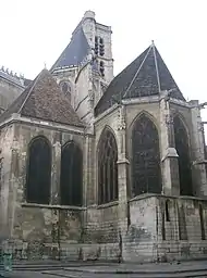 Навпроти східного фасаду Лувру розташований готичний храм Сен-Жермен-л'Осерруа, заснований у XII століття (відтоді збереглась лише висока романська дзвіниця). Хори XIII століття належать до ранньої готики, основний масив храму XV століття — до полум'янистої готики, а бічний портал — до епохи Відродження. Як і більшість середньовічних будівель Парижа, цей храм пізніше був реконструйований, але були збережені унікальні нервюрні склепіння, мережева троянда, цінні вітражі, численні скульптурні звершення карнизів, водостоків і башточок. Сен-Жермен-л'Осерруа була парафіяльною церквою королівського двору, що розміщувався у сусідньому Луврському замку, тому в ній поховані багато художників, скульпторів, архітекторів і науковців, що працювали і жили при дворі. Дзвін на башті цієї церкви сповістив про початок різанини гугенотів у Варфоломіївську ніч (24 серпня 1572 року)[63].