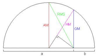 Геометричний зміст середніх значень для двох чисел.