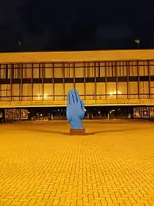 14 грудня 2019 велетенська рука синього кольору, привезена до Дніпра з Миколаєва у рамках проєкту "Moving Monuments" (пам’ятники, що рухаються), і тимчасово встановлена біля Дніпропетровського академічного театру опери та балету[4] [5].