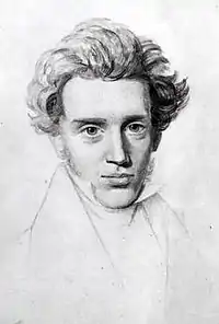 прослухати)[9]) (5 травня 1813 — 11 листопада 1855) — данський філософ і теолог, основоположник екзистенціалізму[10]. Він писав на теми організованої релігії, християнства, моралі, етики, психології та філософії релігії мовою, сповненою метафор, іронії й гіпербол. Більшість із його філософських робіт присвячені розгляду питання про те, як людина живе як «одиничний індивід», зосереджуючи увагу більше на конкретній реальності людського життя, ніж на абстрактному мисленні й підкреслюючи важливість особистого вибору й відданості[11].