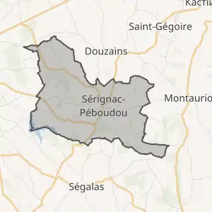 - Розташування муніципалітету Сериньяк-Пебуду на мапі Франції та сусідні муніципалітети