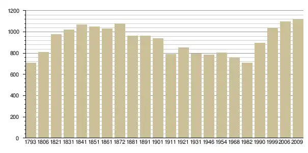 Динаміка населення (base Cassini de l'EHESS pour les nombres retenus jusque 1962[3], base Insee à partir de 1968 (population sans doubles comptes puis population municipale à partir de 2006)[4] · [5] ):