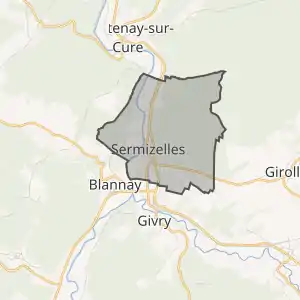 - Розташування муніципалітету Сермізель на мапі Франції та сусідні муніципалітети