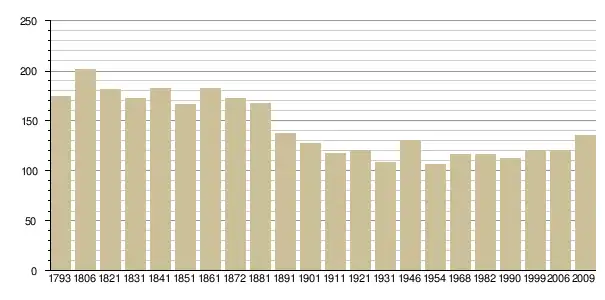 Динаміка населення (Cassini-Ldh-EHESS[4] і Insee 2009[5] ):