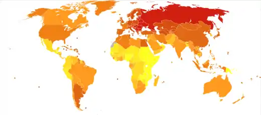 Понад три чверті випадків смерті від ССЗ мають місце у країнах з низьким та середнім рівнем доходу. Із 17 мільйонів передчасних випадків смерті (у віці до 70 років) від неінфекційних захворювань 2015 року, 82% відбуваються у країнах з низьким та середнім рівнем доходу, а 37% — через ССЗ.