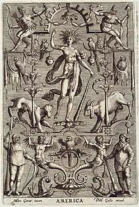 Мартен де Вос малюнок, гравер Адріан Колларт. «Алегорія Америки»