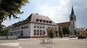 Муніципалітет розташований на відстані[2] близько 420 км на схід від Парижа, 30 км на північний схід від Страсбура.