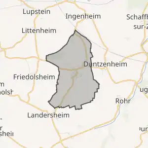 Муніципалітет розташований на відстані[2] близько 380 км на схід від Парижа, 23 км на північний захід від Страсбура.