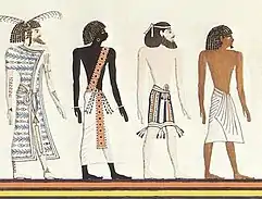 Потім зображено хід шістнадцяти чоловіків, по чотири в групі, що підходять до Хора. Це чотири раси людей, єгиптяни, семіти, чорношкірі негри і білошкірі лівійці. Останні в довгому одязі і пір'ях на голові.