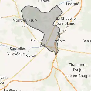 Муніципалітет розташований на відстані[2] близько 250 км на південний захід від Парижа, 100 км на північний схід від Нанта, 19 км на північний схід від Анже.