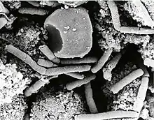 ![]() Мікрофотографія бактерій (бацил) сибірки (фарбування за Грамом). | ||||||||||||||