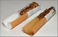 Сигаре́та (Цигарка)— тютюновий виріб для куріння, що являє собою циліндр із сигаретного паперу, наповнений подрібненим тютюном. Паперова оболонка (сорочка) сигарети відрізняється від цигаркової більшою горючістю[1], тліє і не гасне навіть без затяжок. Часто сигарета споряджається фільтром, але є марки, де фільтр відсутній.