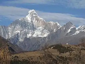 Основними типами рельєфу є: суха і тепла долина (напівпосушливі долини), альпійське плато, високий гірський пейзаж. Належить до субтропічного мусонного клімату. Водночас присутня різниця біля піків, між ними та навколишніх долинах. Гірська частина, зокрема, вищі шари, належать до помірного, бореального, субарктического, холодного клімату, на самих верхівках піків — вічна мерзлота. Середньорічна температура становить 5,9 °C, середня температура біля гірських піків — 17.1 °C, безморозний період становить 78 днів. В рік в середньому випадає 931,5 мм опадів. Сонячні години — 2265 годин на рік.