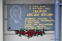 На будинку по вулиці Соборній (колишня Радянська), 4, в якому в 1941—1942 рр. мешкав Олександр Сидорчук, досі є меморіальна дошка.