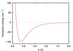 де a — характерна для конкретних атомів стала, r — відстань між атомами. Знак мінус свідчить про те, що сили Ван дер Ваальса зумовлюють притягання між атомами.