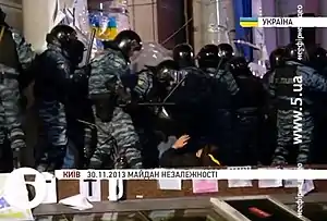 ![]() Беркутівці б'ють лежачого протестувальника | |||||||||