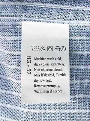 Символи розташовуються на спеціальному ярлику, який пришитий до виробу. Місце розташування ярлика з символами по догляду, волокнистим складом тканини та можливо іншою інформацією, регламентується техстандартом.